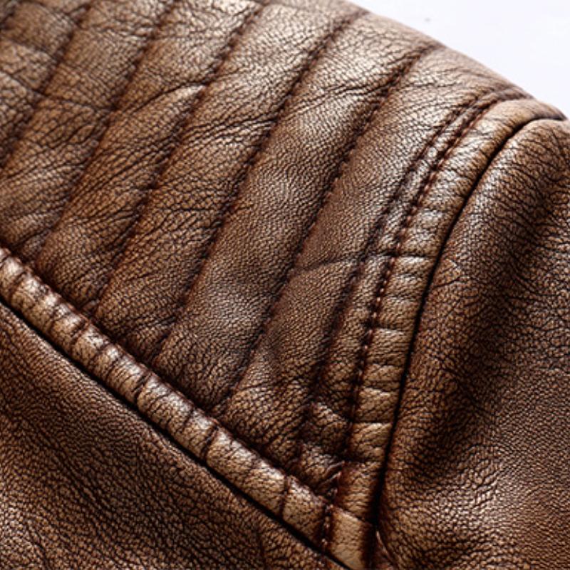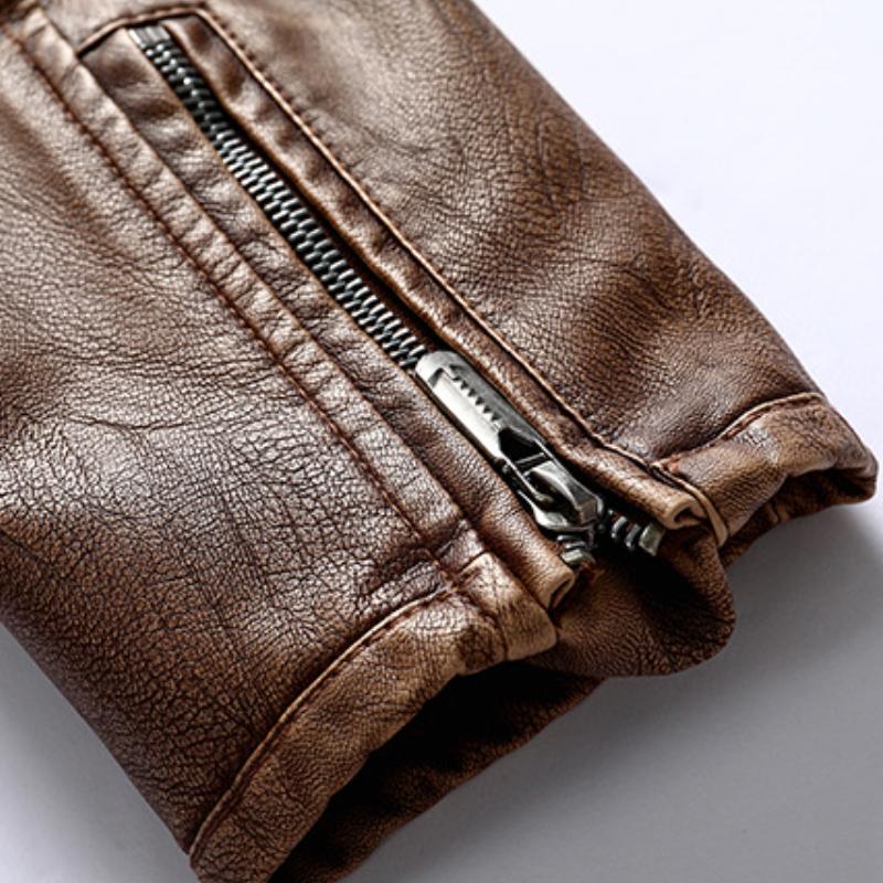 Diese Vintage-Motorradjacke kombiniert markantes Design mit einer modernen Slim-Fit-Passform. Der Stehkragen und der Reißverschluss bieten sowohl Stil als auch Funktionalität. Perfekt für Abenteuer auf der Straße oder in der Stadt.