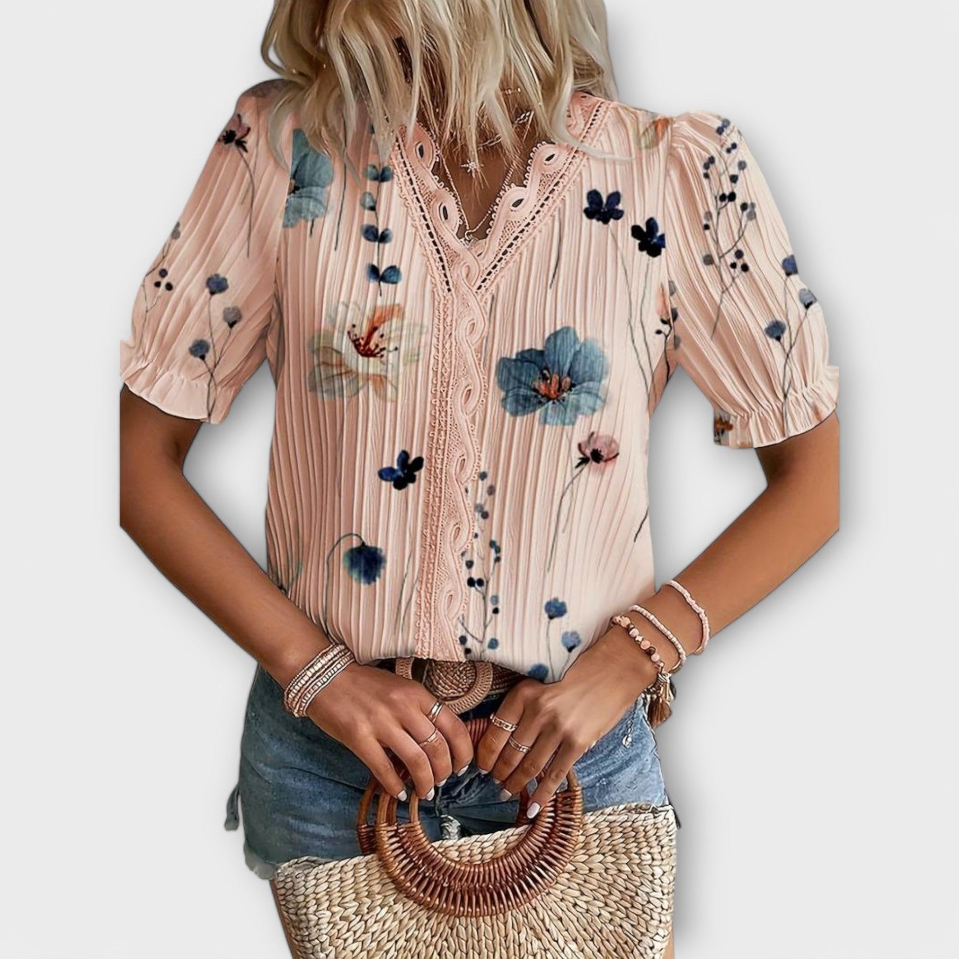 Vervollständige deine Garderobe mit der zeitlosen Bluse Emily – eine Bluse mit einem V-Ausschnitt, die perfekt für den Frühling geeignet ist. Der elegante V-Ausschnitt verleiht einen raffinierten Akzent und betont charmant dein Dekolleté. Das leichte, atmungsaktive Material sorgt für Komfort, während die lockere Passform eine lässige Eleganz verleiht. Die Bluse lässt sich für jede Gelegenheit stylen – vom Büro über Treffen in einem Café mit Freunden bis hin zu einem gemütlichen Tag in der Stadt. Mit Emily wirst du immer stilvoll gekleidet sein, voller Selbstvertrauen und Eleganz.