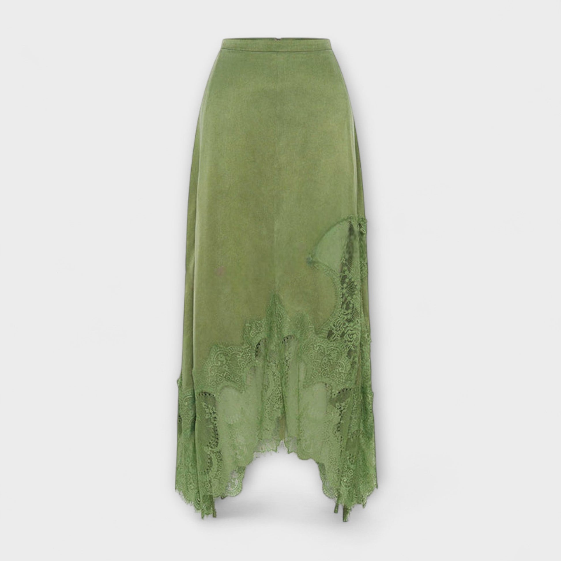 Kaia - Satinbluse mit Spitzenbesatz und plissiertem Ausschnitt im Set