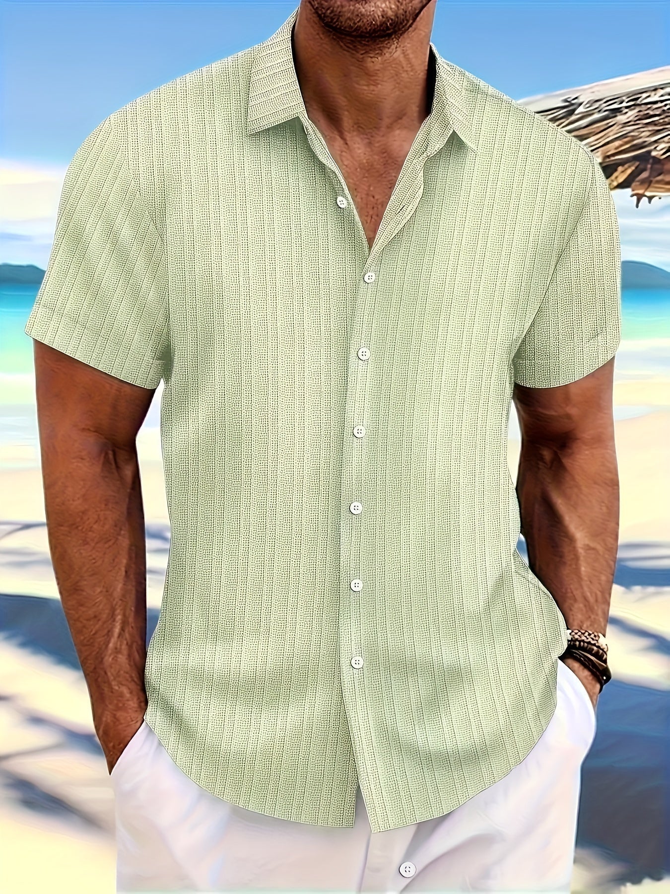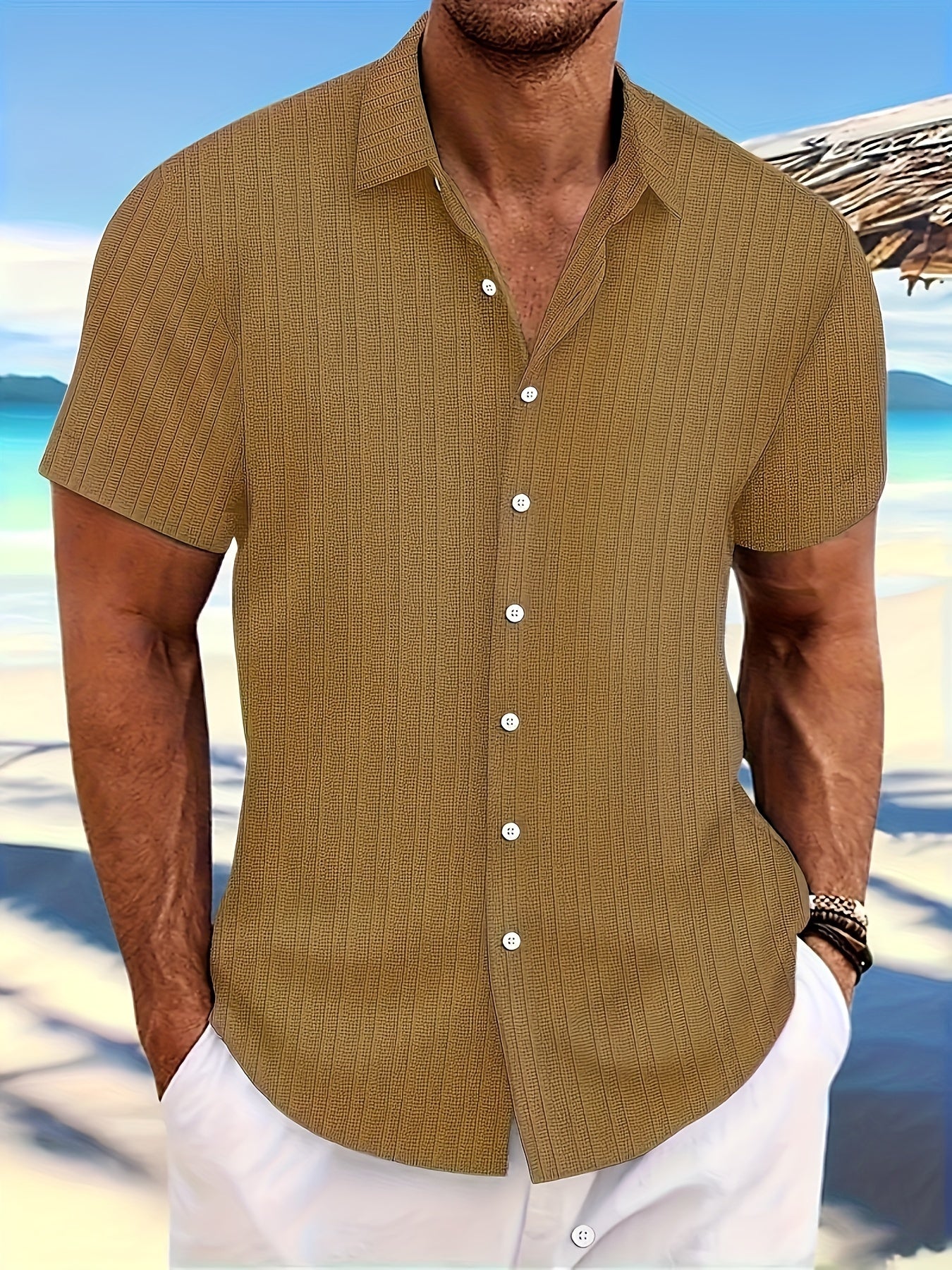 Entdecken Sie modernen Stil mit diesem Kurzarmhemd für Herren aus leichtem, atmungsaktivem Stoff mit dezenten Streifen. Der lockere Schnitt sorgt für Komfort und Bewegungsfreiheit, ideal für warme Tage im Büro oder am Wochenende. Lässt sich vielseitig mit Jeans, Shorts oder eleganten Hosen kombinieren.