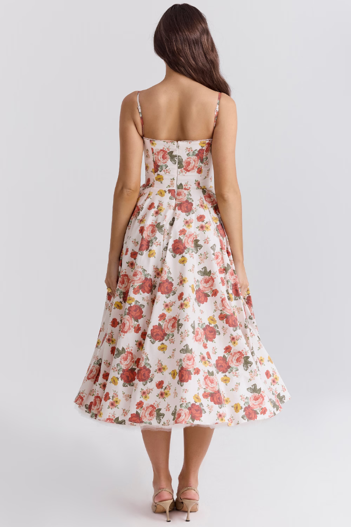 Stellen Sie sich vor: Sie, strahlend im Sophia-Kleid, bereit, jedes Event zu erobern. Dieses wunderschöne Kleid aus glänzendem Herzogssatin mit einem Hauch von Powermesh umhüllt Ihre Taille perfekt und bietet unvergleichlichen Komfort und Stil. Der schwingende Midi-Rock mit voluminösem Tüll sorgt für einen unvergesslichen Look, der Ihre Figur wunderschön betont.